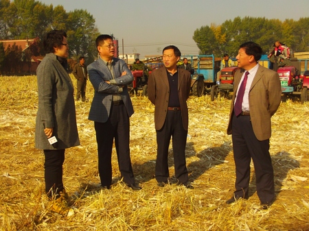 10月12日,吉林省农机局成洪局长带领中央电视台和吉林省电视台记者,在九台市农机局冯成河局长和王德会副局长的陪同下,来到九台市卡伦镇玉米机械收获现场检查指导工作。