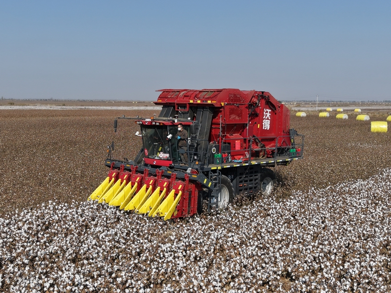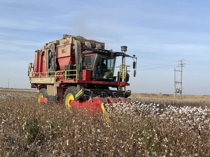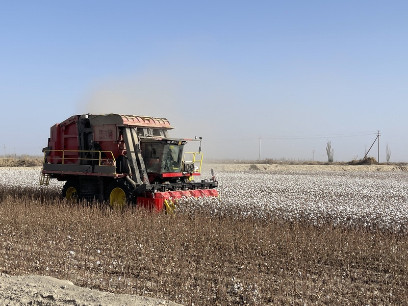 在今年的新疆棉花采收期,农业农村部农业机械化总站联合新疆农牧业机械产品质量监督管理站,在沙湾市、乌苏市、库尔勒市、沙雅县连续跟踪新疆钵施然智能农机股份有限公司、铁建重工新疆有限公司、江苏沃得农业机械股份有限公司3家企业的6款混合动力棉花打包收获机,进行实际生产场景下的综合测评,验证机具的适用性、可靠性和经济性,有力推动相关企业和科研单位在混合动力农机上的研制熟化和推广应用。