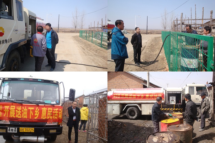 为了解决农民买油难等实际困难,让农民切实得到实惠,确保春耕顺利进行。送油时间是春季4月10日--到5日10日、秋季9月---10月,在4月15日,珲春市农机局会同中石油吉林延边珲春市销售分公司工作人员到珲春市英安镇富民村、向阳村、东关西村开展了“送油下乡”惠民活动。