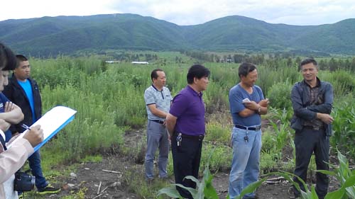 延边州农机局尹局长带队于7月1日对我市申报保护性耕作补贴的凉水镇三户用户进行实地考察。在农户种植区可以看到实施保护性免耕播种的土地上玉米出苗高,叶片多,缺、漏在合理范围内,与同期播种的其他的未用免耕机播种的地块相比,苗高、根扎的深、叶片多、保温保墒效果好。尹局长同农户在田间对播种、打药、机具的维护等方面进行了详细的了解和询问,同时对农民在使用机具播种时出现的问题进行解答,同时对此次保护性耕作补贴资金测量土地面积和要求做出指示和要求。