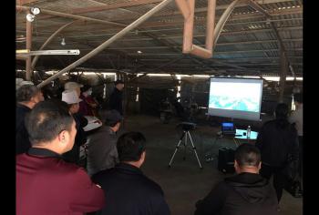 | 农机管理总站为新华街道新兴小区居民播放老城区改造宣传片 |